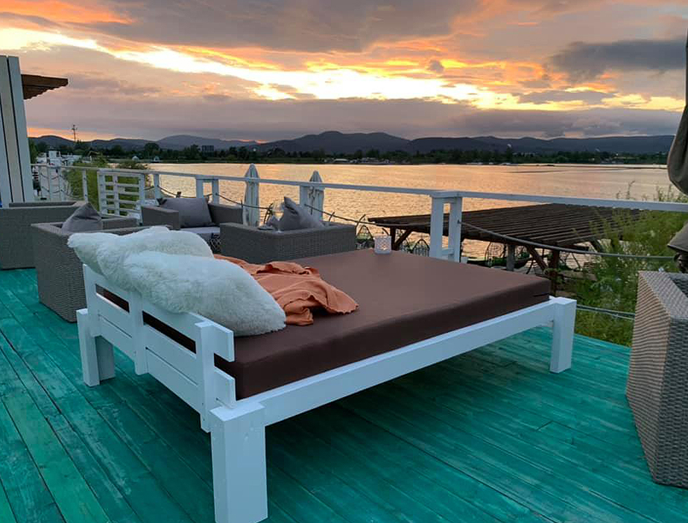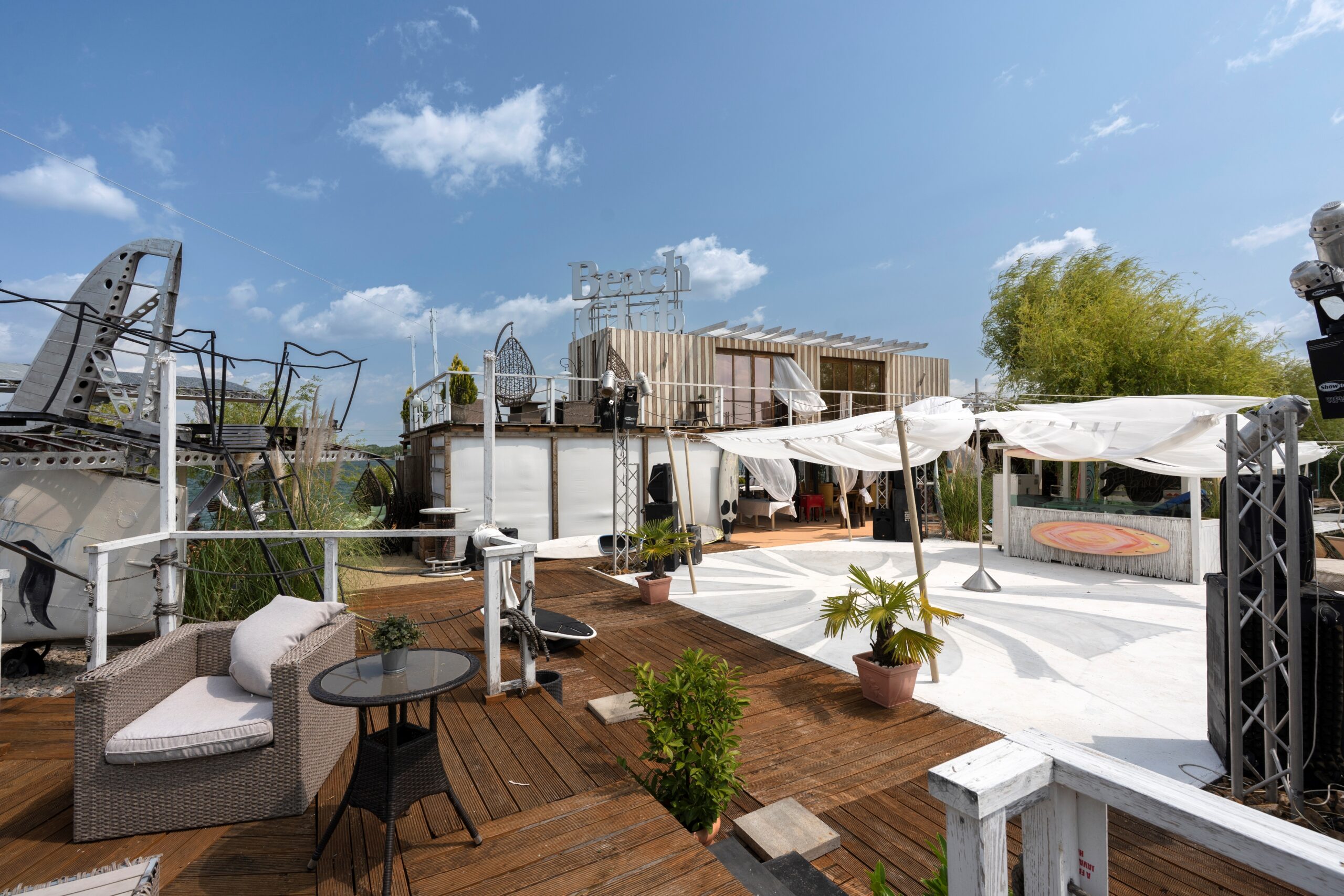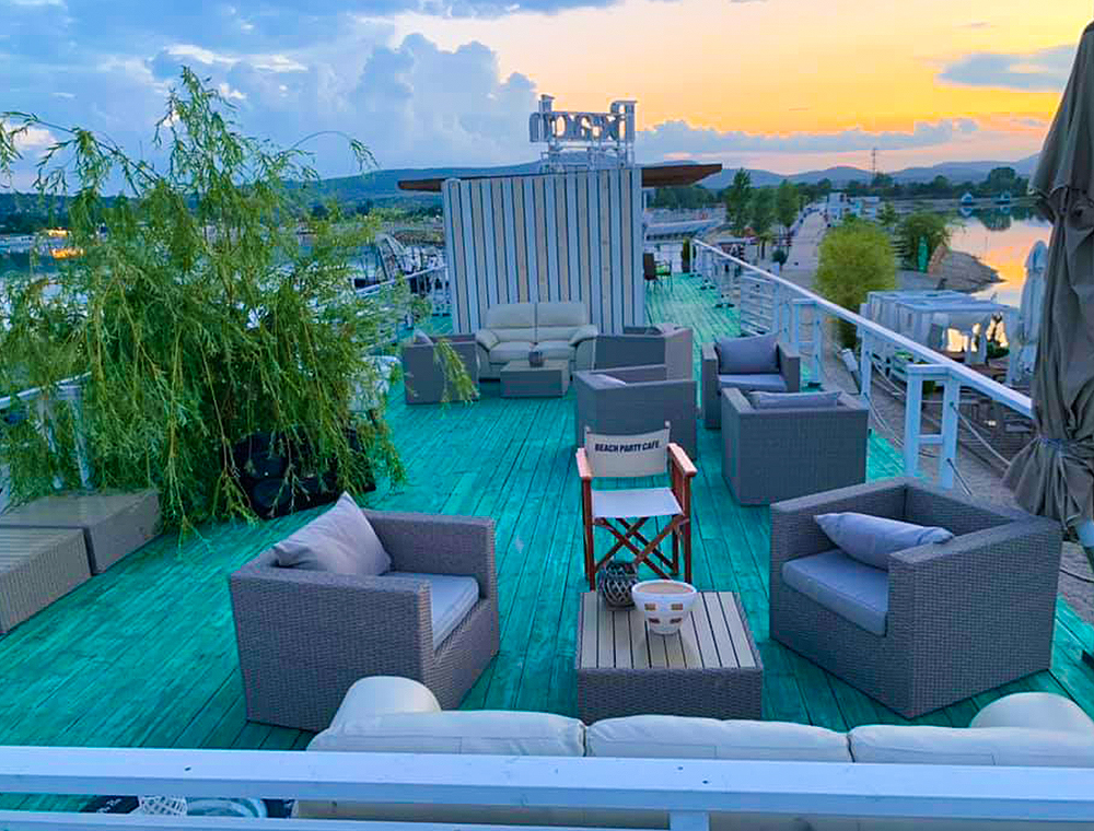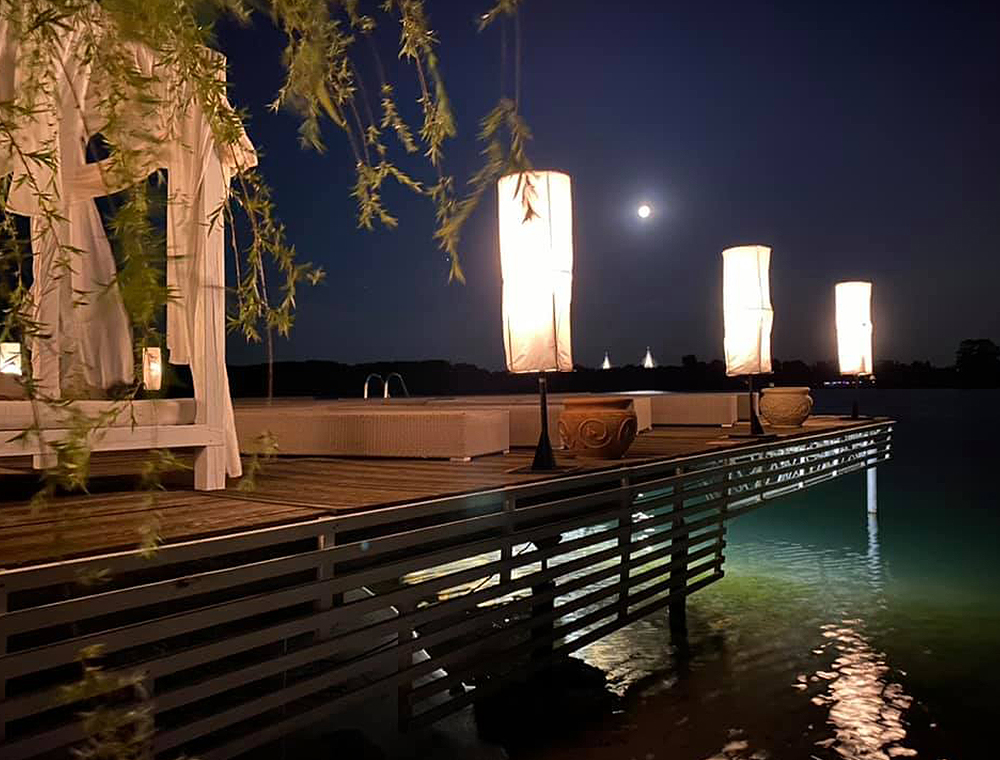 Tedd le az autódat a II. parkolóban, sétálj be hozzánk, vagy hívj minket már a főparkolóból és a vízi-taxi már megy is érted, hogy közvetlenül eljuthass hozzánk! Keresd a repülőgépet a tó közepén! Pont itt vagyunk! 4000 m2-en felhőtlen kikapcsolódás, gourmet kalandok, ínyenc dallamok, a funky, vocal funkhouse, smooth funk, soul, disco és bargroove világából. Hűsítő kiváló italok, koktélok, sonka és borbár rész, grill terasz, heti 3-4 alkalommal rendszeres programok, beach party-k, délután és este, DJ-k, fellépő zenészek, vendégművészek, élőzenei improvizációk, táncosok, naplemente feeling, cafe del mar party-k, jóga és pilates órák, sport massage.